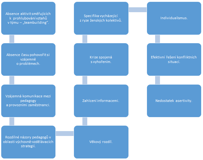 Obrázek 1: Nejčastější problematické aspekty pedagogických týmů.