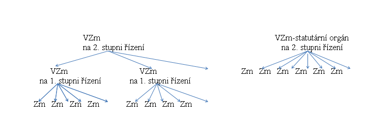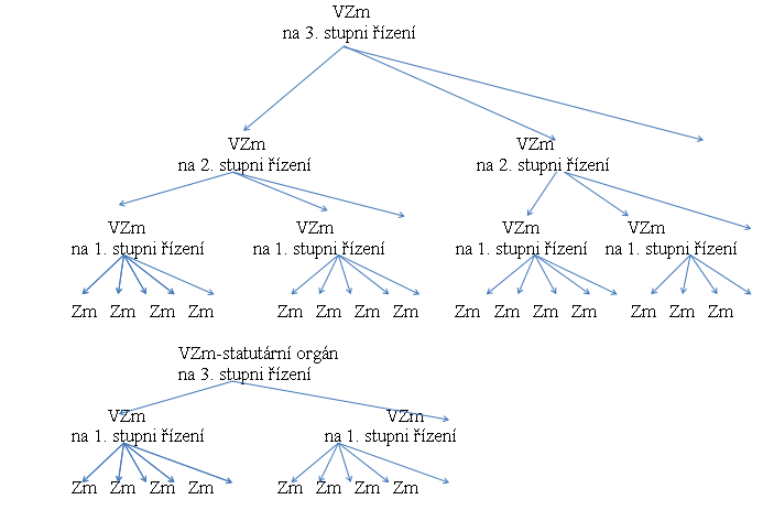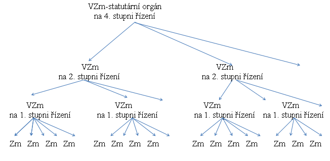 Na 1. stupni řízení, na kterém řídí vedoucí zaměstnanec (VZm) práci podřízených zaměstnanců (Zm), činí toto rozpětí 5 až 30 %.